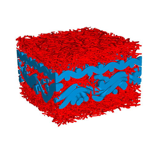 FiberGeo模塊可以通過纖維的隨機分布模式,創建虛擬的無紡布和纖維增強復合材料。纖維可以是直的或彎曲的,輪廓可以設定為不同的形狀(圓形、橢圓形、矩形、纖維素等),也可以設定纖維的朝向和纖維參數的分布等等。
